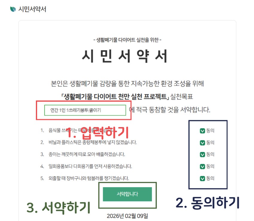 쓰레기 분리배출 실천서약 챌린지 실천서약 참여 안내