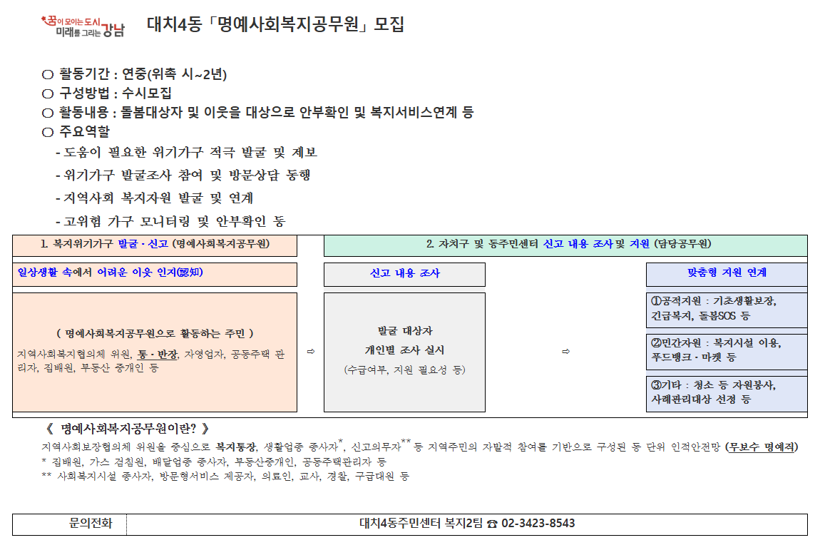 2026년 대치4동 명예사회복지공무원 모집 안내