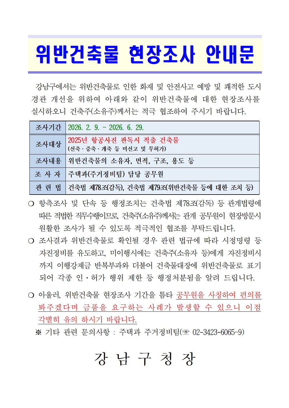 2026년 항측 현장조사 실시(위반건축물 관련) 안내
