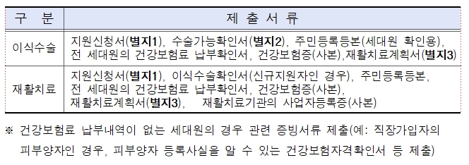 수술 및 재활치료비지원 |