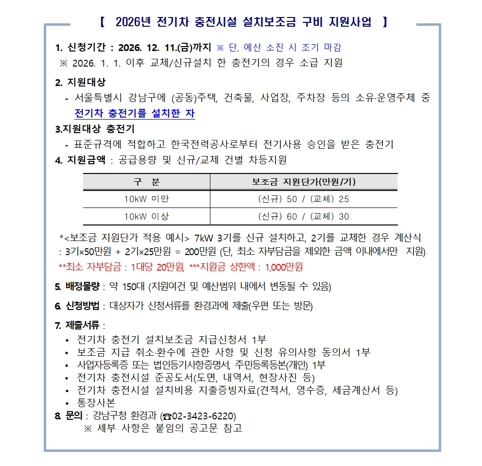 (공고문)2026년 전기차 충전기 설치보조금 구비 지원사업 안내.hwpx [60.89 KB]