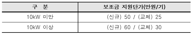 4. 지원금액 : 공급용량 및 신규/교체 건별 차등지원
