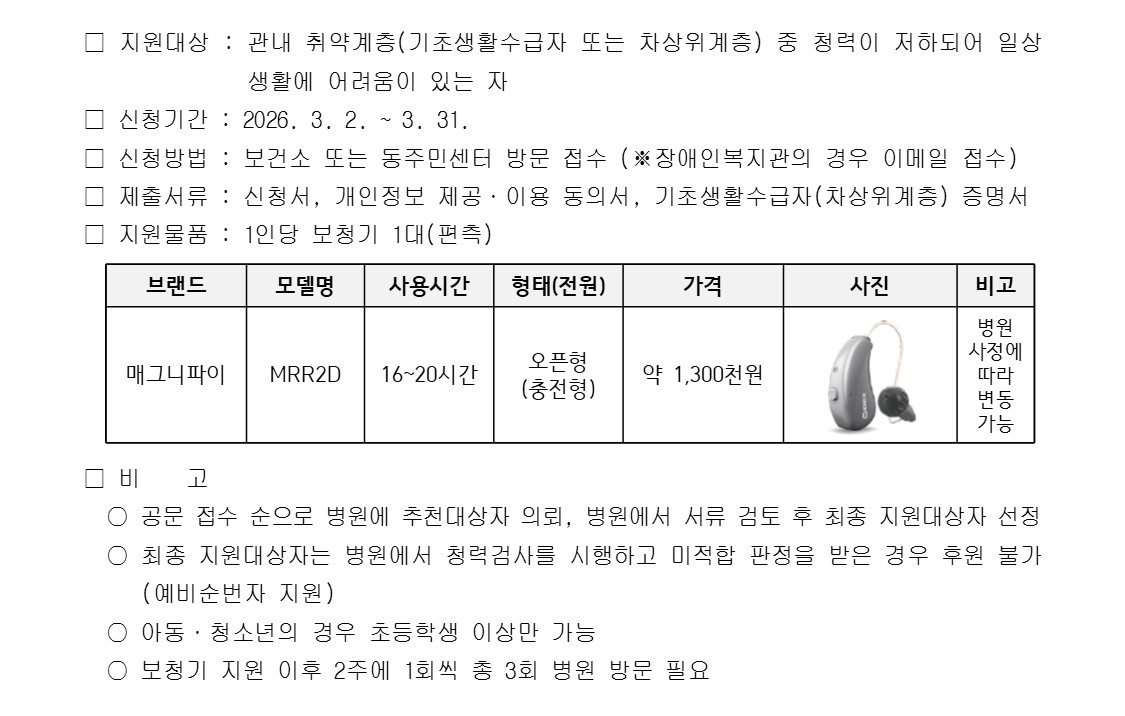 ‘공감(共感) 소리나눔’ 사업 추진 홍보(보청기 지원)