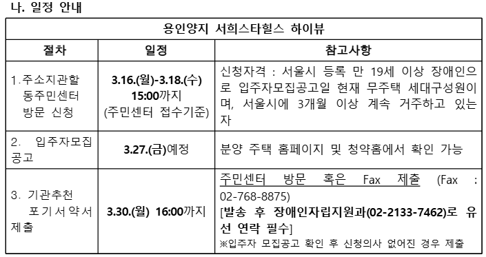 용인양지 서희스타힐스 하이뷰 서울시 장애인 특별공급 기관추천 안내