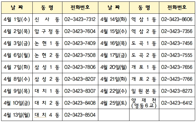 ○ 매월 20일경 일정 공개 (강남구청 홈페이지 → 행정·정보 → 공지사항 → 공지사항)