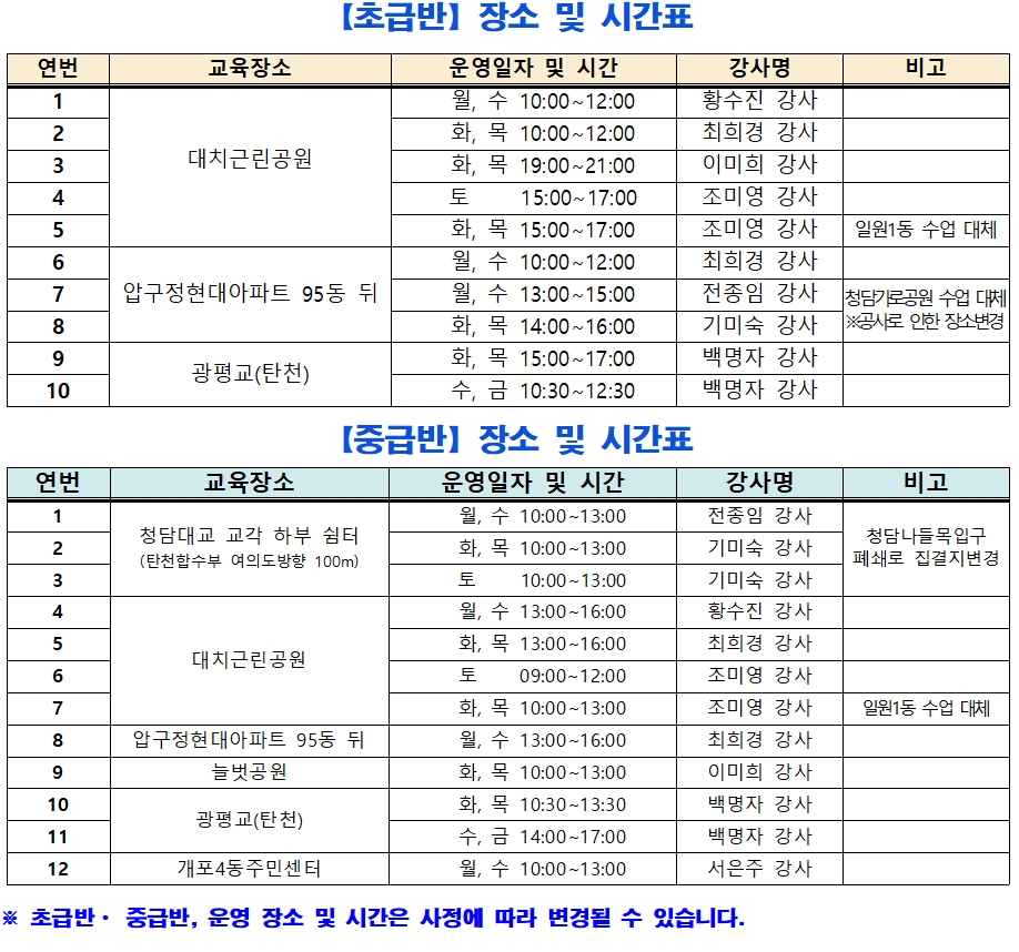 초급반 (무료), 중급반 (1만원, 1개월 수강료)