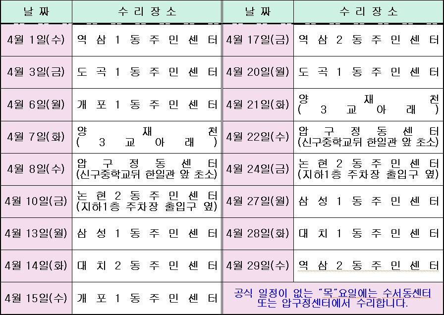 붙임 바르게살기운동 자전거 수리 일정(4월) 1부.