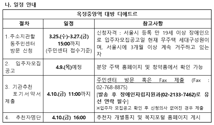 옥정중앙역 대방 디에트르 서울시 장애인 특별공급 기관추천 안내