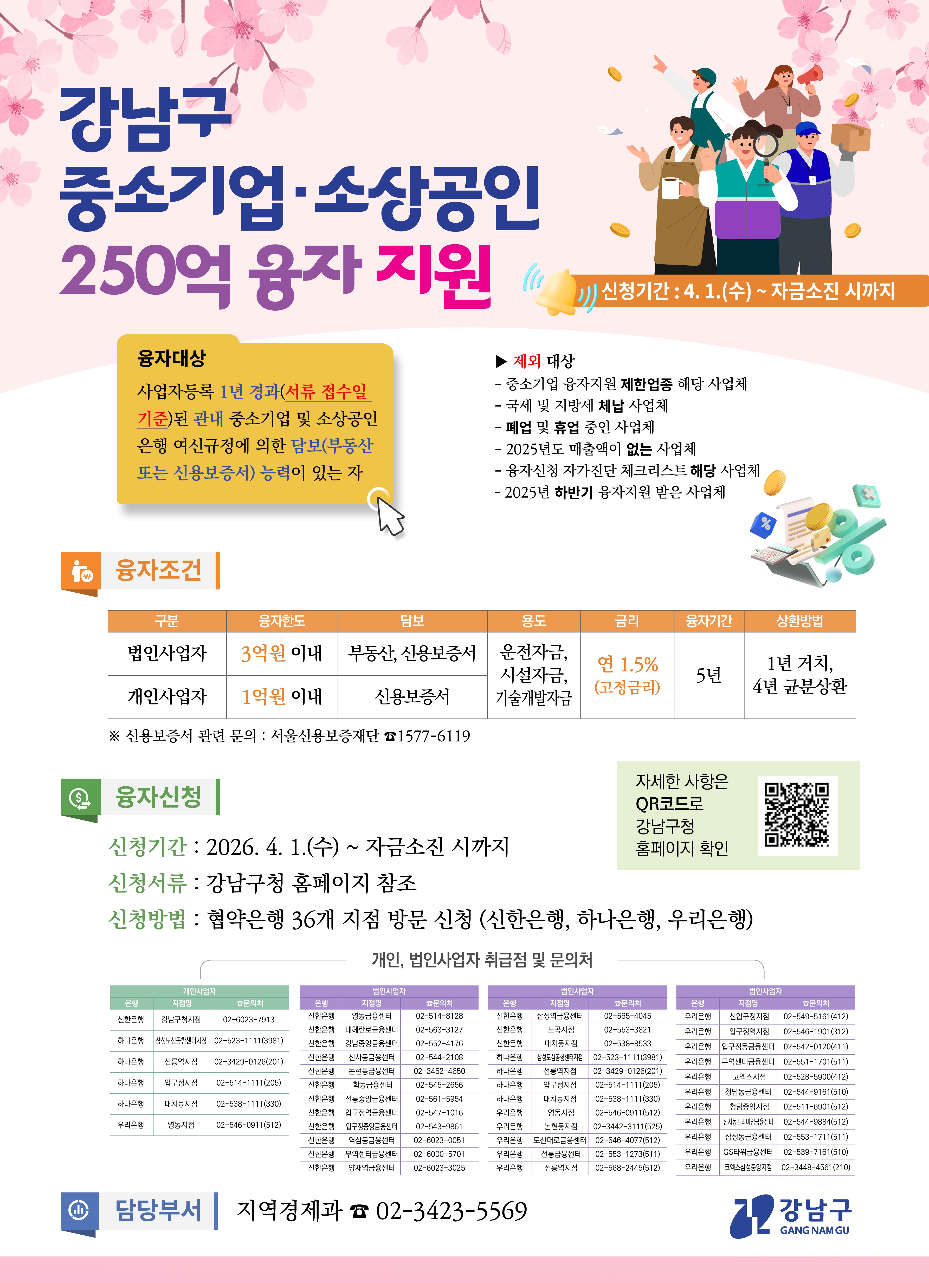 2026년 상반기 강남구 중소기업육성기금 융자 지원 사업 안내