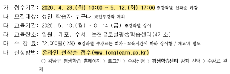 26년 2차 강남구 평생학습센터 학습자 모집 안내문.pdf [3.32 MB]