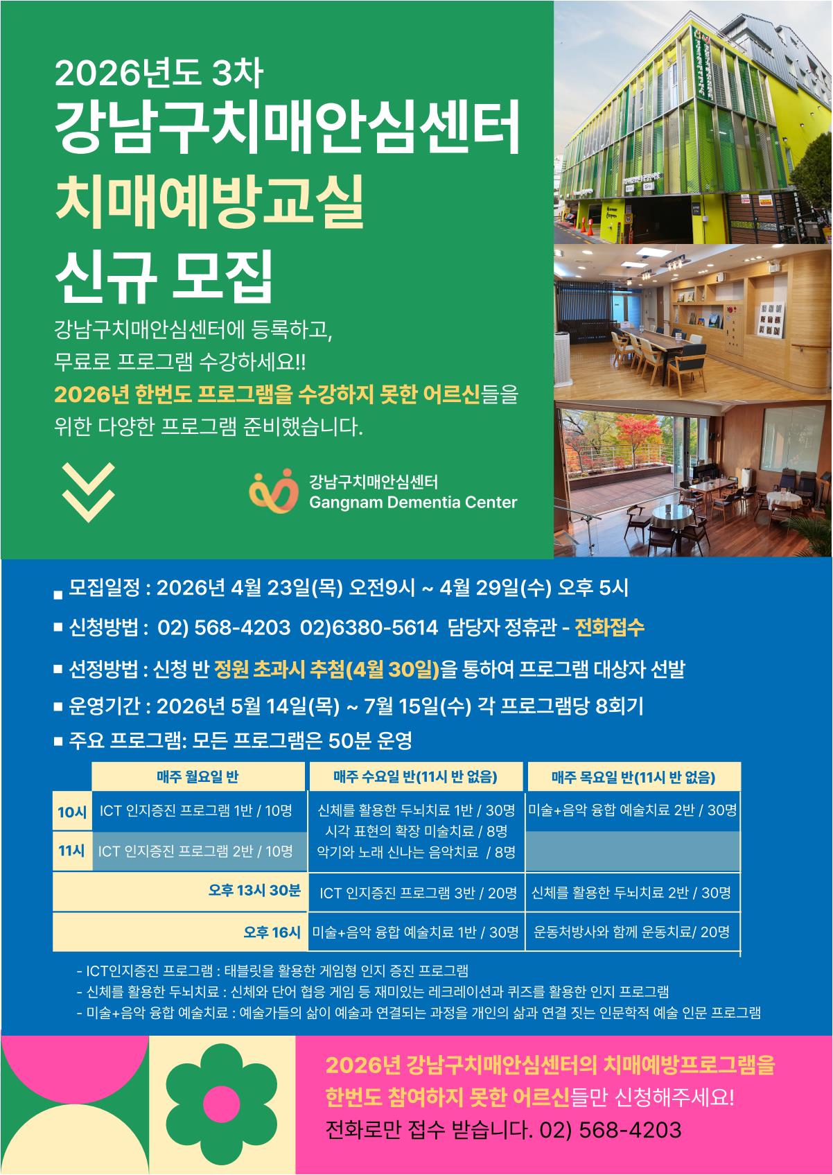 2026년 강남구 치매안심센터 3차 치매예방교실 안내