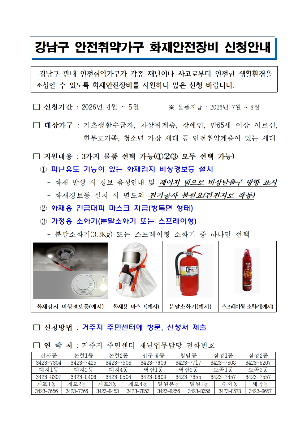 2026년 안전취약가구 화재안전장비 신청 안내