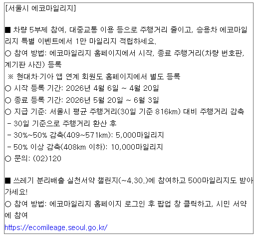 중동 상황 관련 승용차 에코마일리지 특별 이벤트 추진 안내