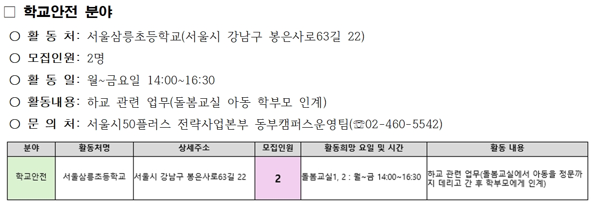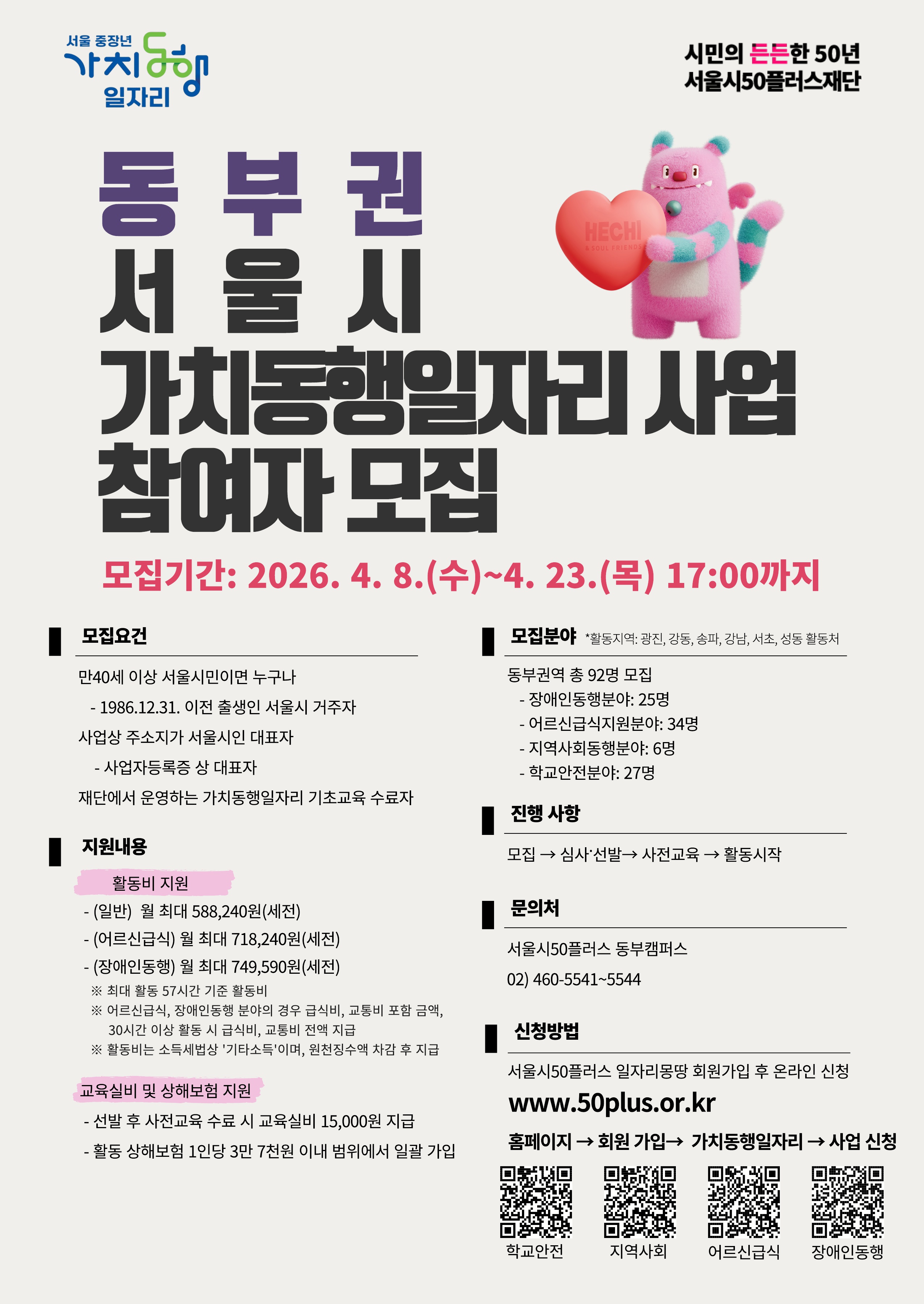 서울시 동부권 가치동행일자리 사업 참여자 모집 안내
