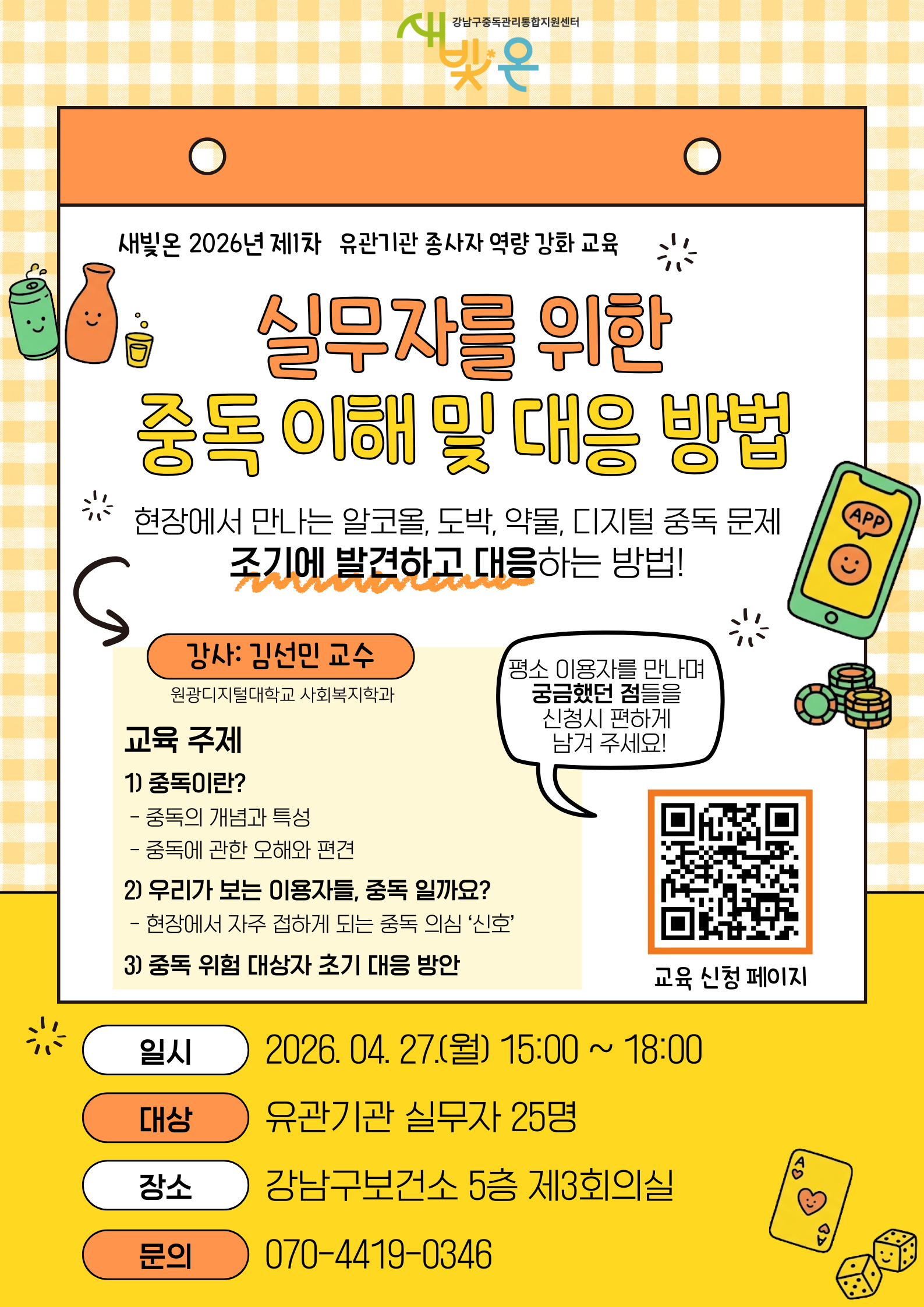 「강남구중독관리통합지원센터」 제1차 유관기관 종사자 역량강화 교육 신청 안내