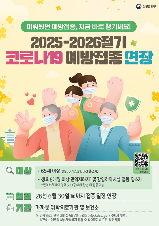 '25-'26절기 코로나19 예방접종 사업 기간을 6. 30.(화)까지 연장되었기에