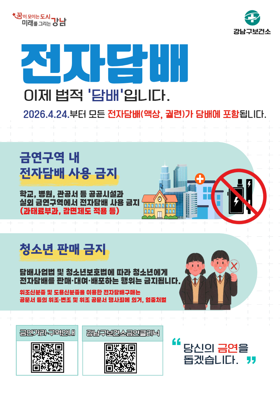 「담배사업법」개정에 따른 전자담배 규제 안내 홍보