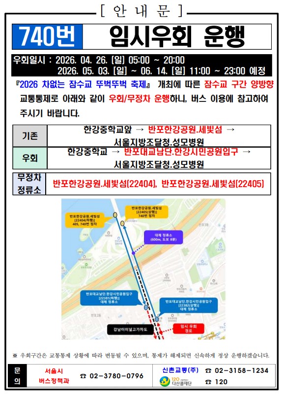 740번 버스 임시우회 운행 안내