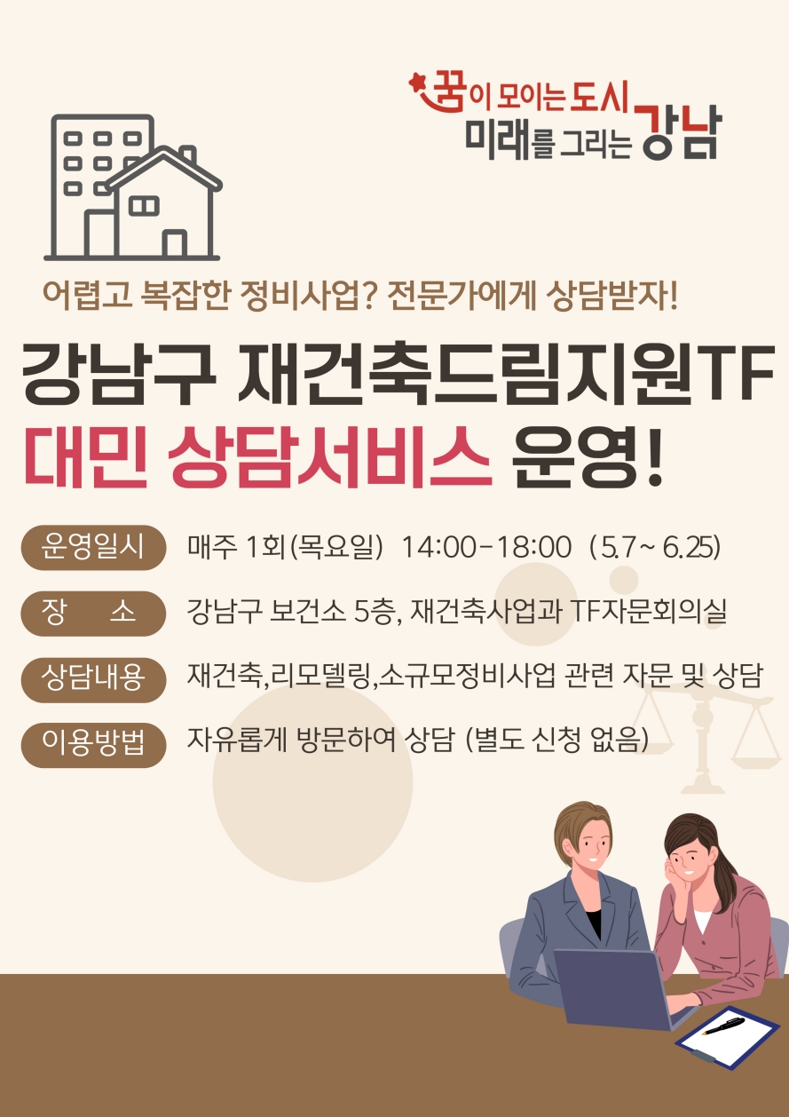 재건축 정비사업과 관련하여 대민상담서비스를 운영하오니 많은 이용 바랍니다.