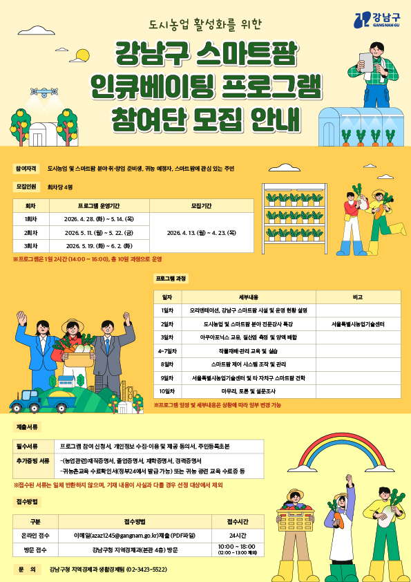 2026년 강남구 스마트팜 인큐베이팅 프로그램 참여단 모집 안내