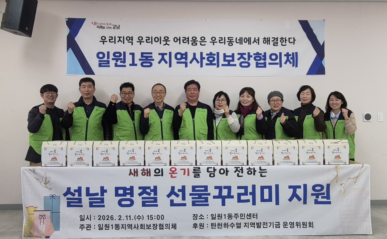 2026.2.12.(수) 설을 앞두고 일원1동지역사회보장협의체 주관으로 선물꾸러미 전달식을 열어 지역사회의 따뜻한 나눔을 실천했습니다.