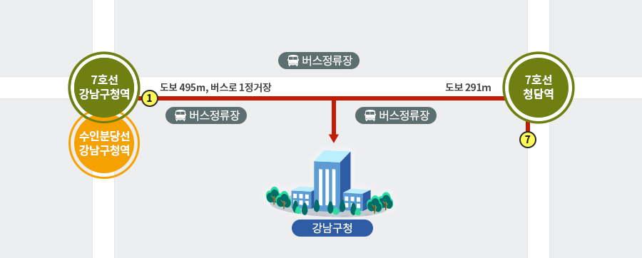 분당수인분당선 (강남구청역) - 1번출구(495m)