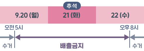 9. 20 오전 5시 ~ 22 오후 8시까지 쓰레기 수거 중지