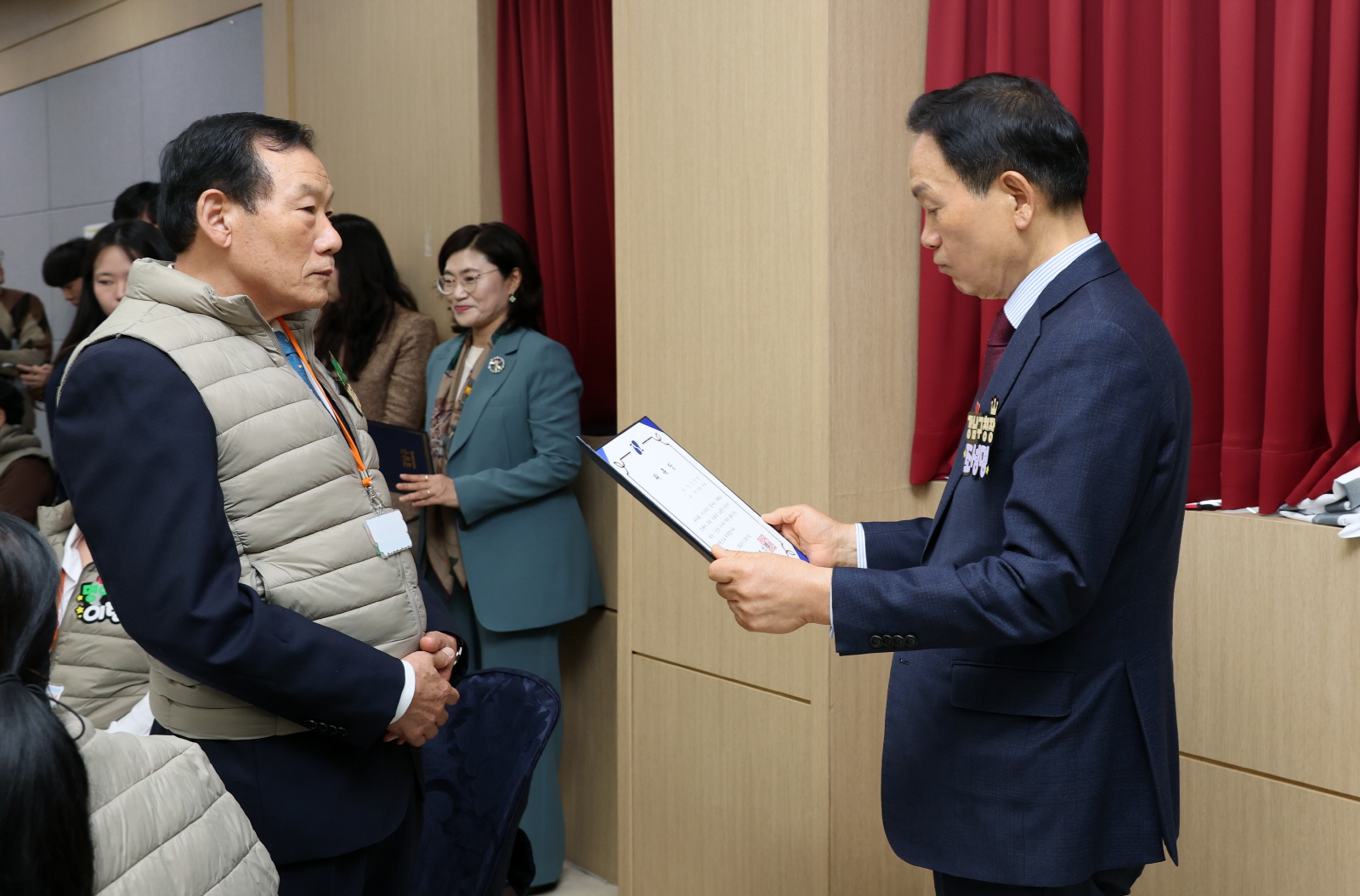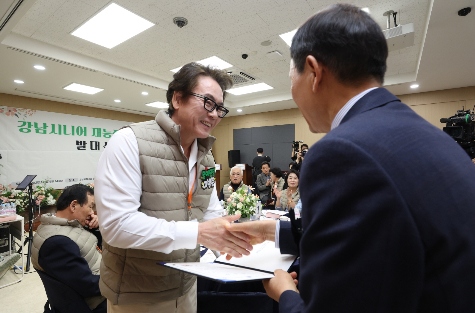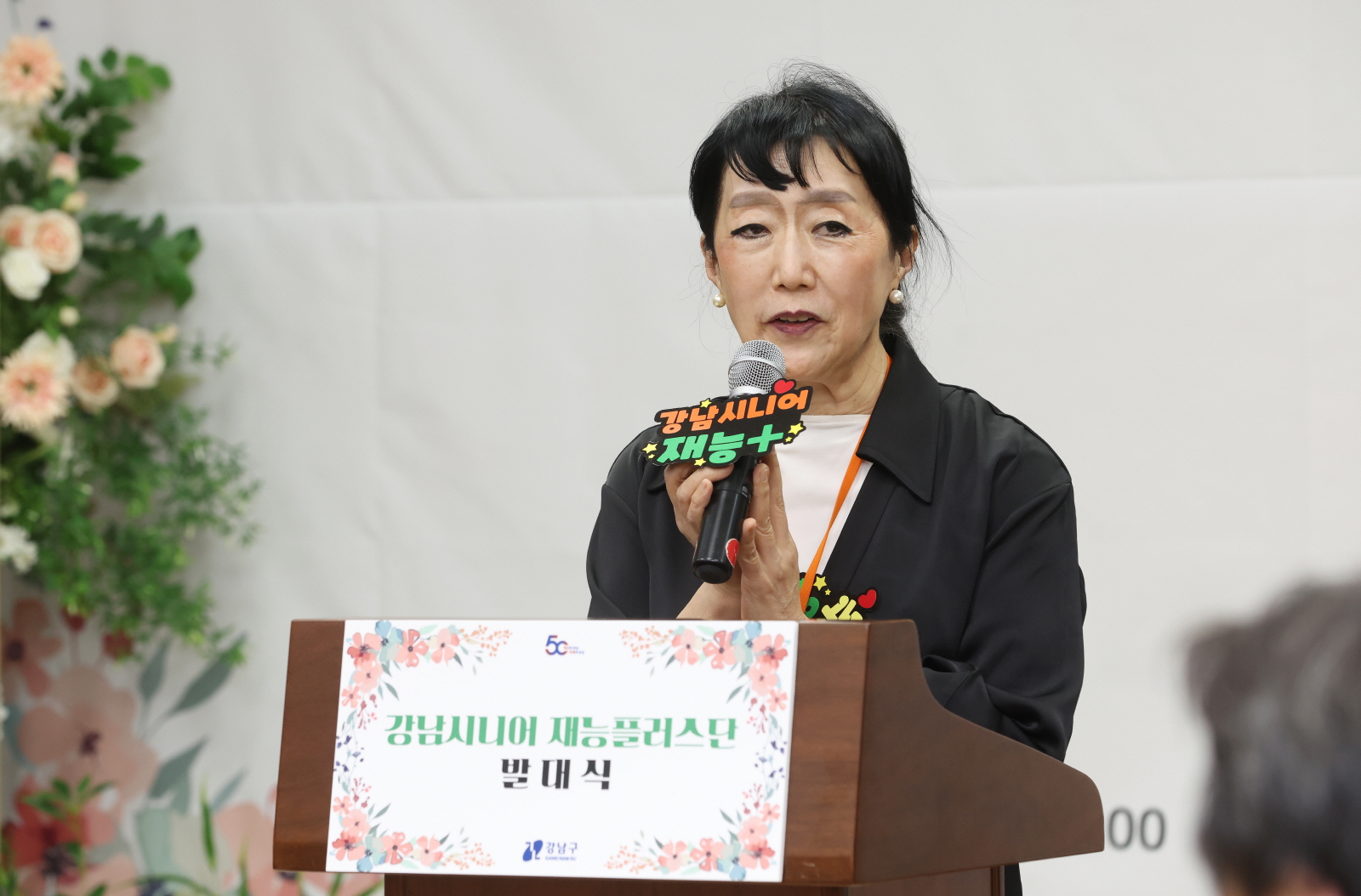 조성명 구청장이 5일 구청 본관 큰회의실에서 열린 ‘강남 시니어 재능플러스단’ 발대식에 참석해 분야별 대표단원들에게 위촉장을 수여하고 선발된 단원들을 격려했다. ‘강남 시니어 재능플러스단’은 지난 9월부터 공개모집과 선발과정을 거쳐 보건·의료, 문화·예술, 교육 등 3개 분야에서 100명의 단원을 선발했다. 단원들은 각 분야의 전문성을 기반으로 지역 내 유관기관 및 시민단체와 협력해 건강상담, 문화예술 등 다양한 공익서비스를 제공할 예정이다.
