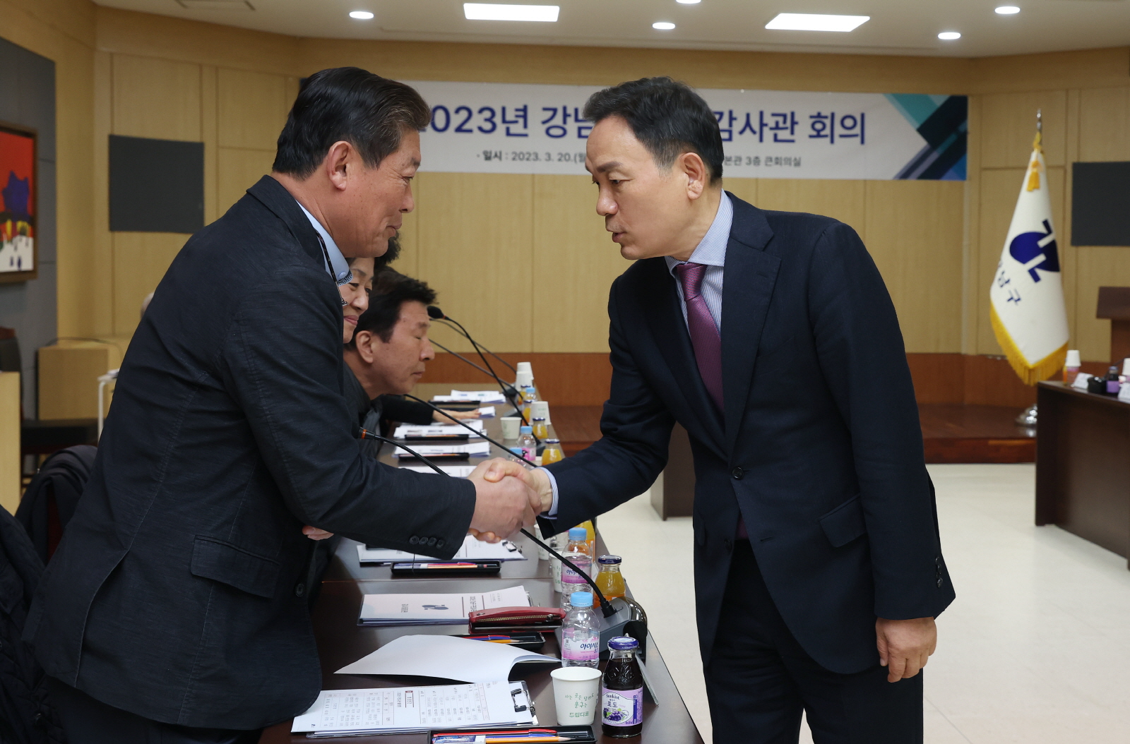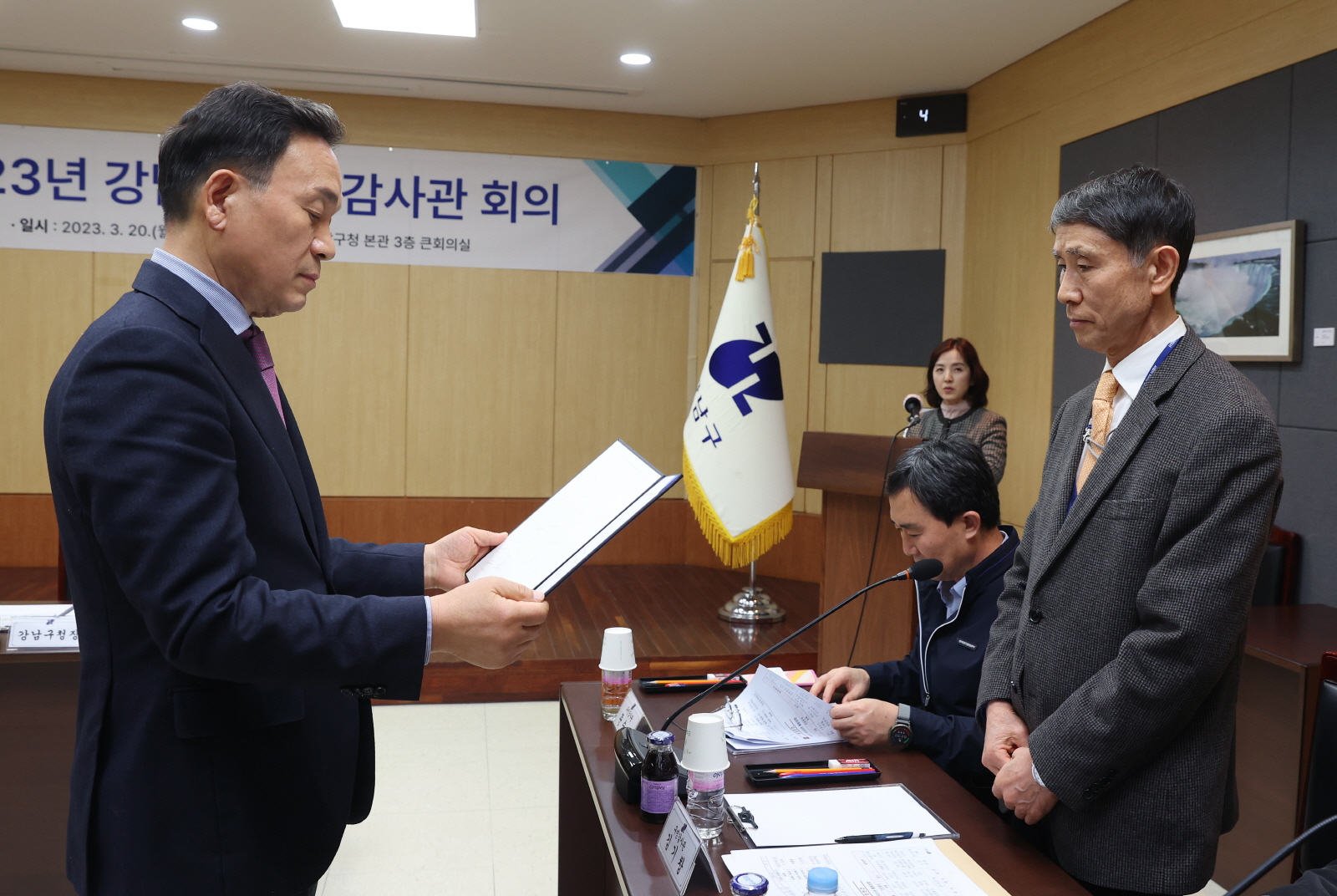 구민감사관 위촉 게재일자2023-03-20 조회수1079 조성명 구청장이 20일 구청 큰회의실에서 열린 ‘2023년 강남구 구민감사관 회의’에 참석해 신규 구민감사관 5명에게 위촉장을 수여하고 격려 인사를 전했다. 원본보기 다운로드 공유하기 링크복사 원본보기 다운로드 공유하기 링크복사 원본보기 다운로드 공유하기 링크복사 원본보기 다운로드 공유하기 링크복사 원본보기 다운로드 공유하기 링크복사 원본보기 다운로드 공유하기 링크복사 원본보기 다운로드 공유하기 링크복사