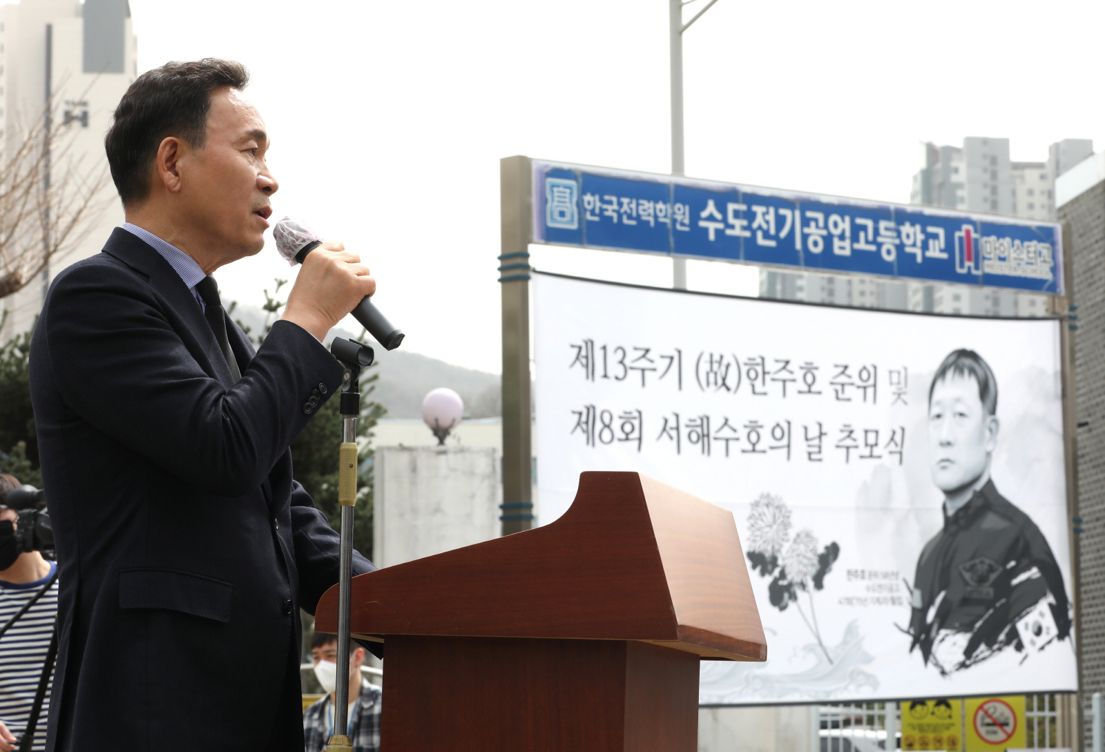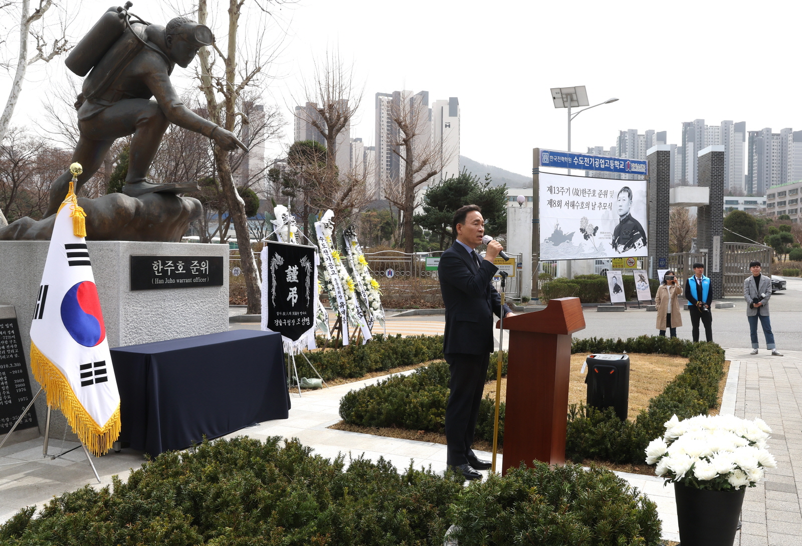 故 한주호 준위 제13주기 추모 게재일자2023-03-24 조회수1374 조성명 구청장이 24일 수도전기공업고등학교에서 열린 ‘故한주호 준위 순국 제13주기 및 제8회 서해수호의 날 추모식‘에 참석해 고인의 넋을 기리며 추모사를 낭독하고 헌화를 했다. 원본보기 다운로드 공유하기 링크복사 원본보기 다운로드 공유하기 링크복사 원본보기 다운로드 공유하기 링크복사 원본보기 다운로드 공유하기 링크복사 원본보기 다운로드 공유하기 링크복사 원본보기 다운로드 공유하기 링크복사