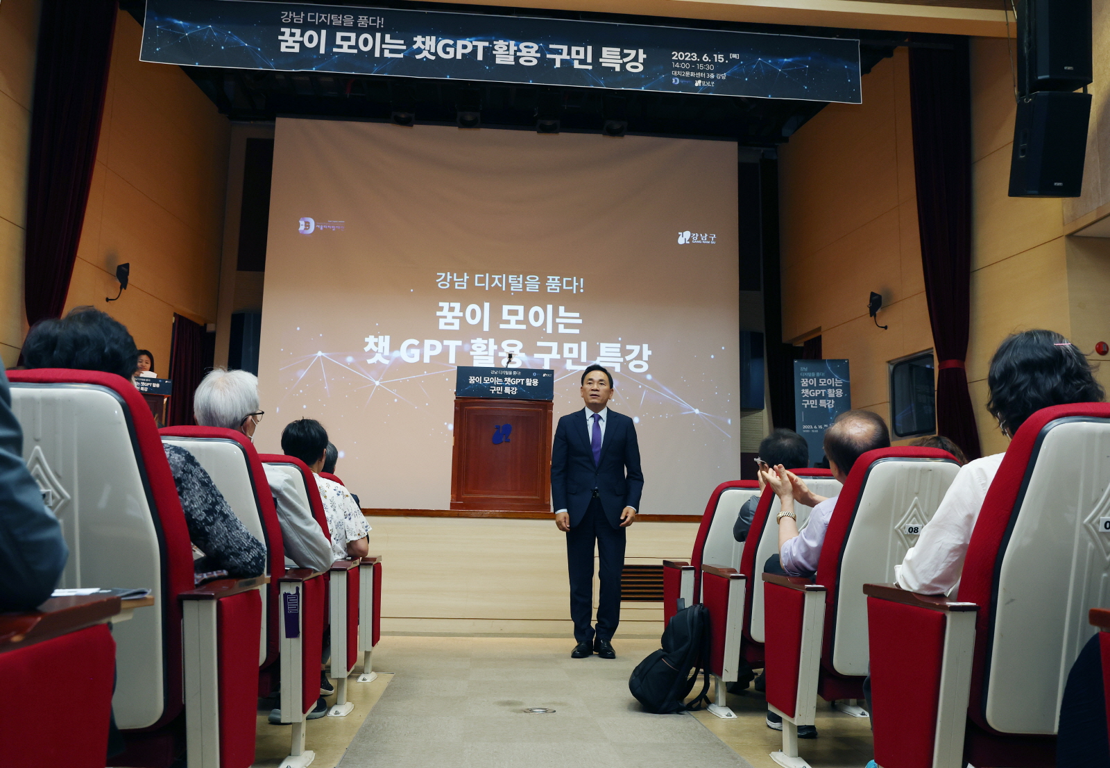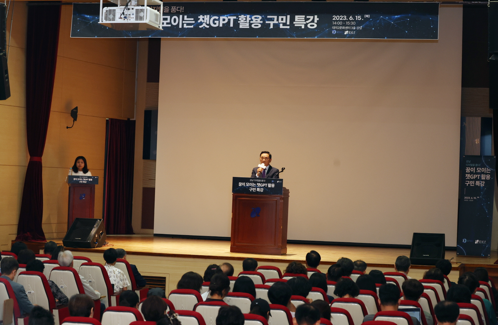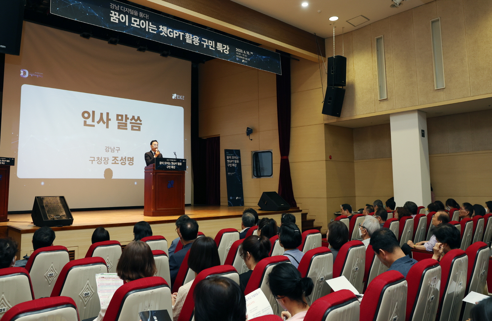 꿈이 모이는 ‘챗GPT 활용 구민특강’ 게재일자2023-06-15 조회수1523 조성명 구청장이 15일 대치2동문화센터 대강당에서 열린 ‘챗GPT 활용 구민 특강’에 참석해 구민들에게 인사말을 전했다. 원본보기 다운로드 공유하기 링크복사 원본보기 다운로드 공유하기 링크복사 원본보기 다운로드 공유하기 링크복사 원본보기 다운로드 공유하기 링크복사 원본보기 다운로드 공유하기 링크복사 원본보기 다운로드 공유하기 링크복사