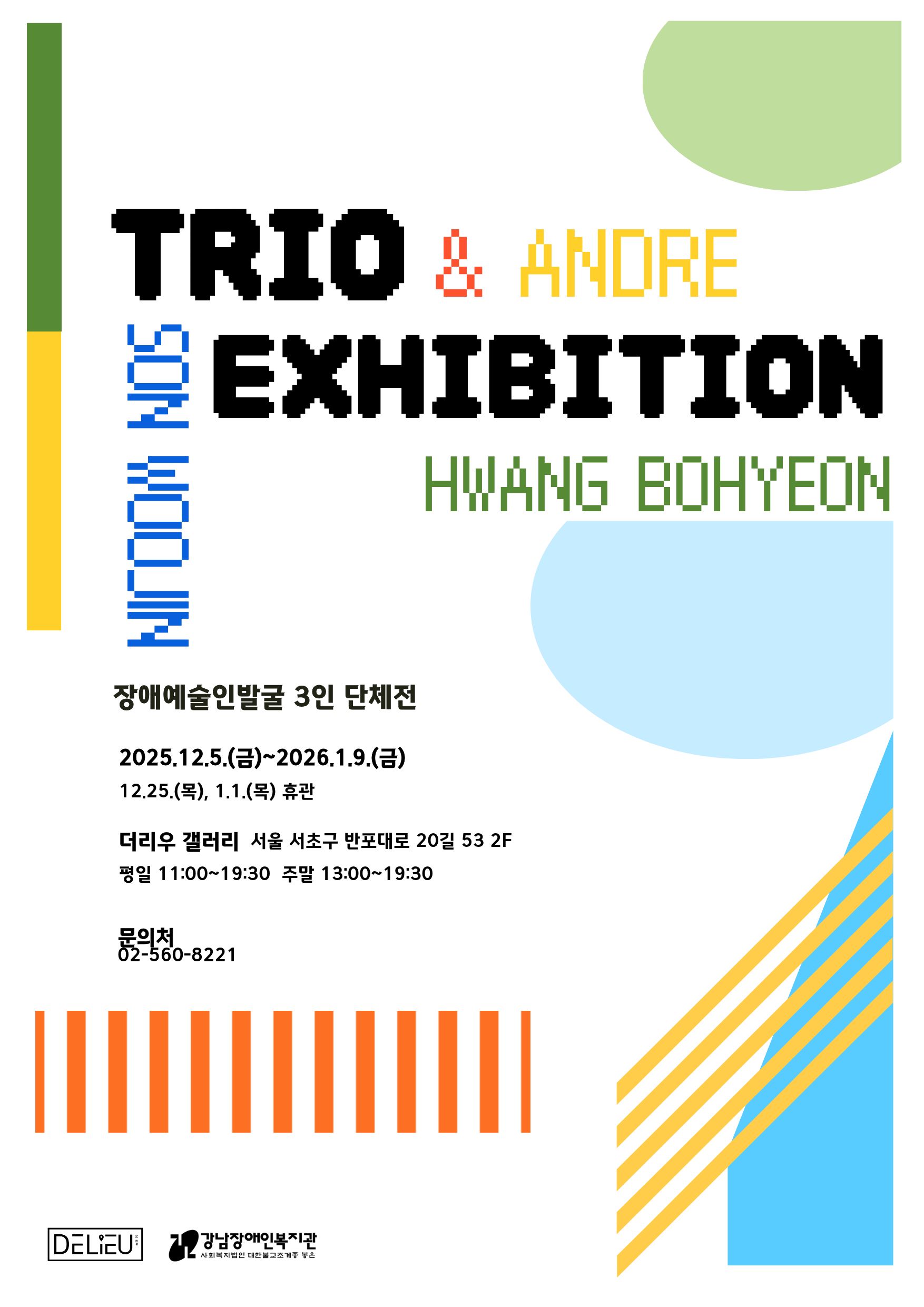강남장애인복지관은 장애예술인의 창작 활동을 지원하기 위해 2025년 발굴 작가 3인과 함께 기획전시 〈Trio Exhibition: Tiny Stories Together〉 를 개최합니다.