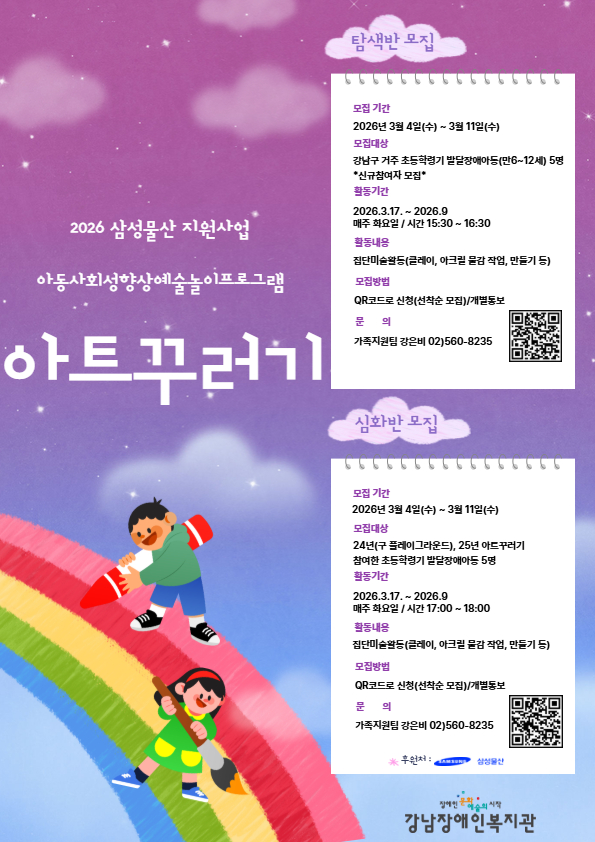 2026년 삼성물산 지원사업 – 아동사회성향상예술놀이프로그램 ‘아트꾸러기’ 참여자를