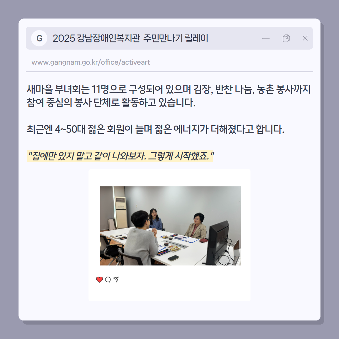 개포3동 새마을부녀회 박금남 회장님과 함께한 주민만나기 릴레이