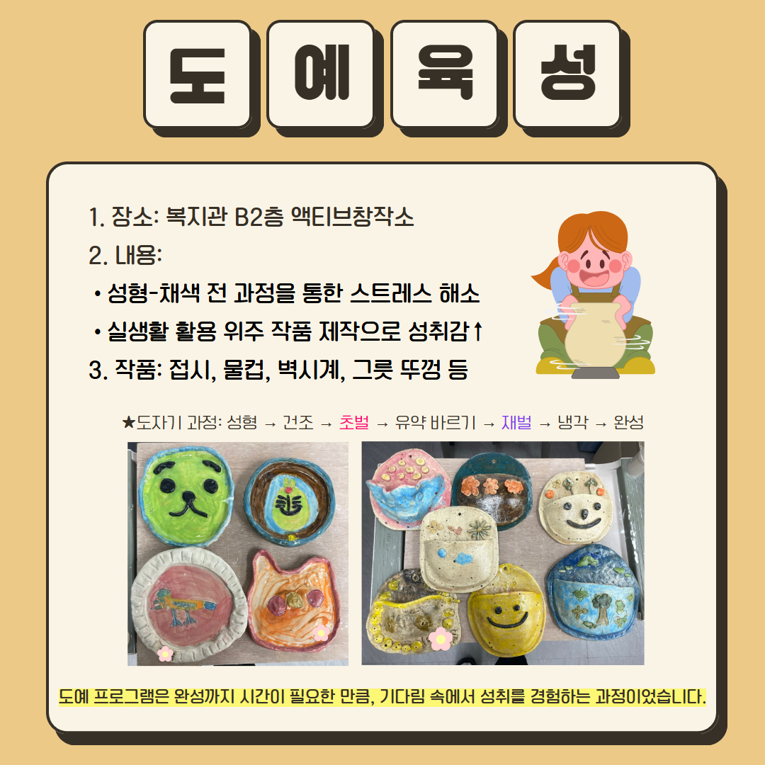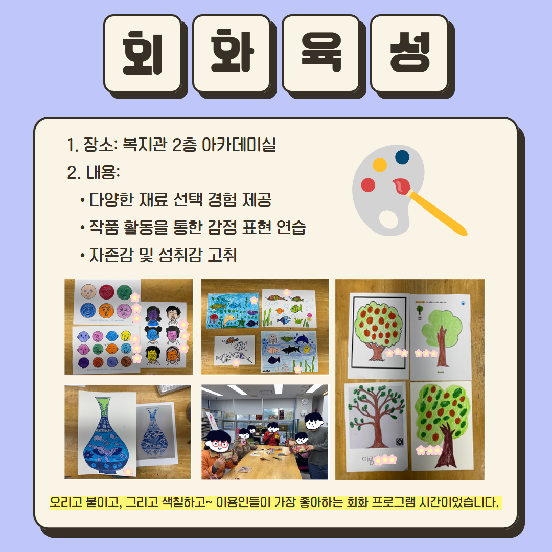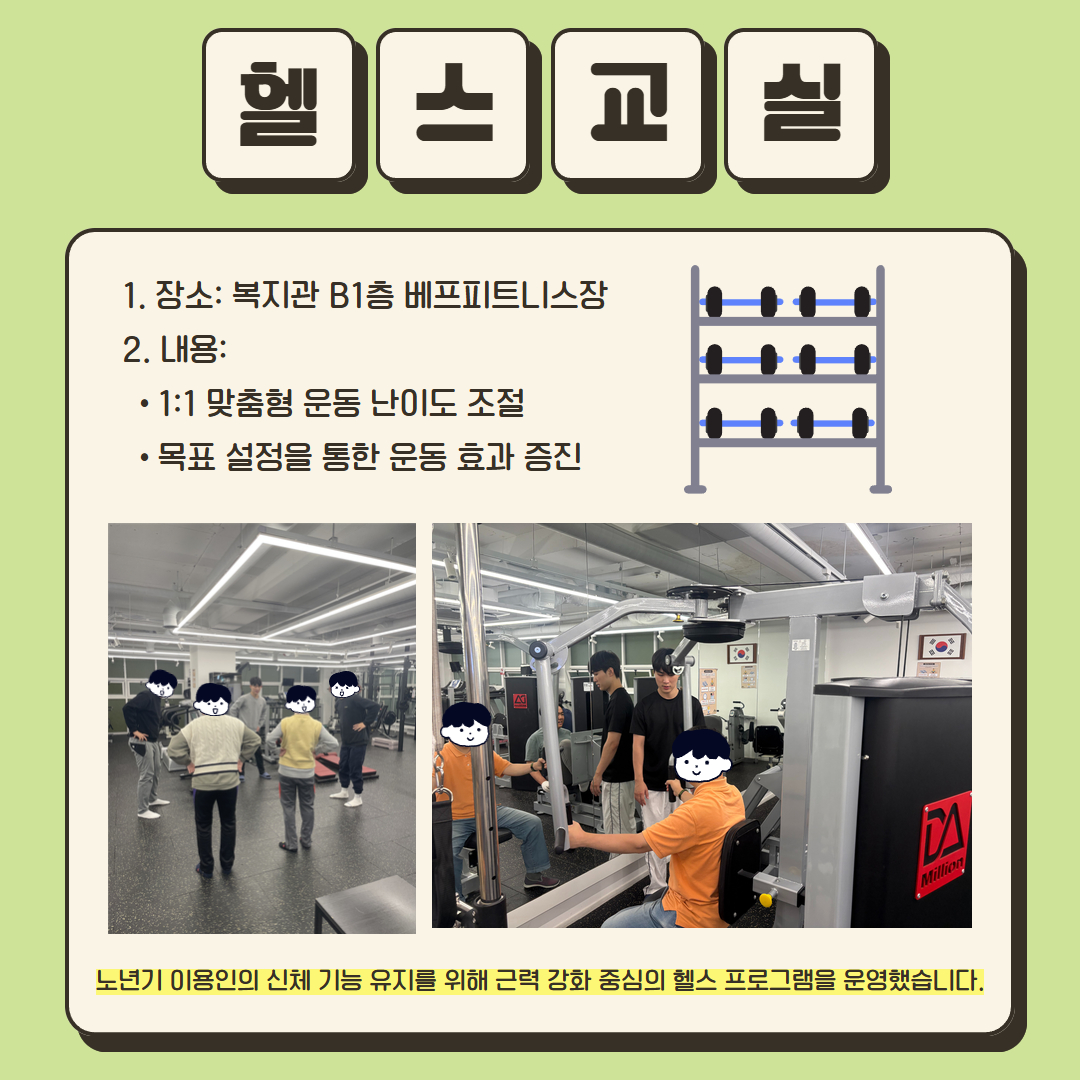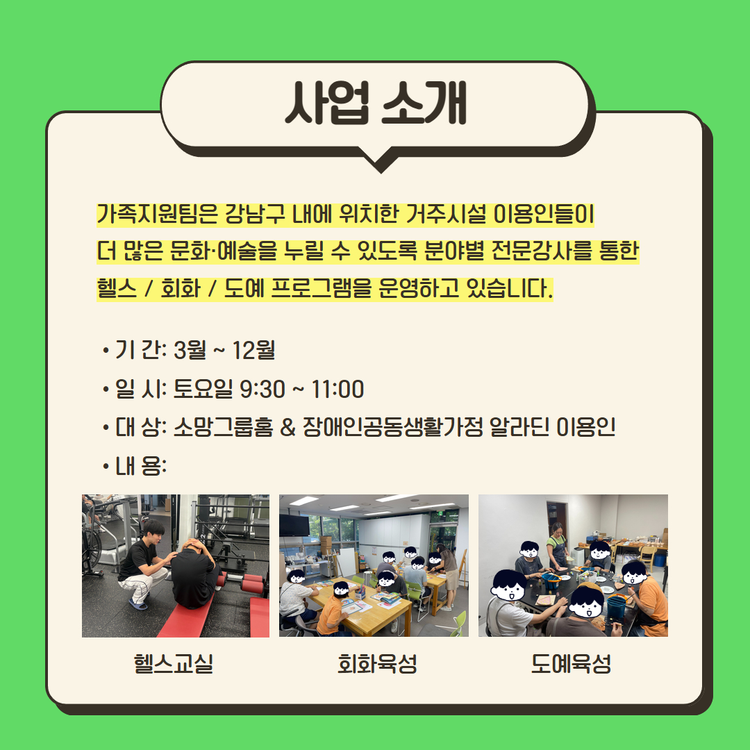 거주시설 중증 장애인 이용인들과 함께한 헬스교실, 회화육성, 도예육성 프로그램의 주요 활동 결과를 공유합니다.