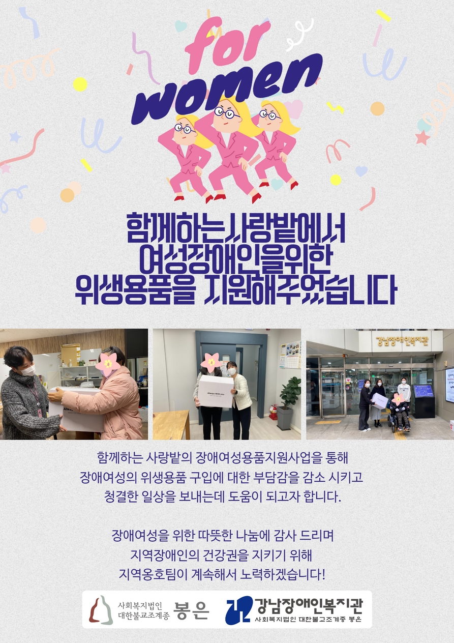 여성장애인을 위해 위생용품을 지원하였습니다!