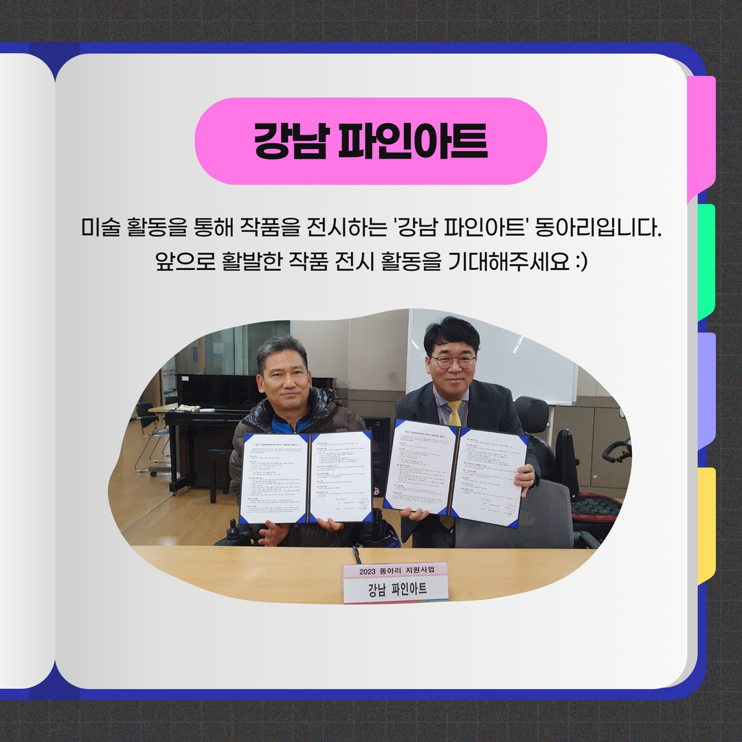 첫 번째로 미술활동을 통해 작품을 전시하는 '강남 파인아트' 동아리입니다.