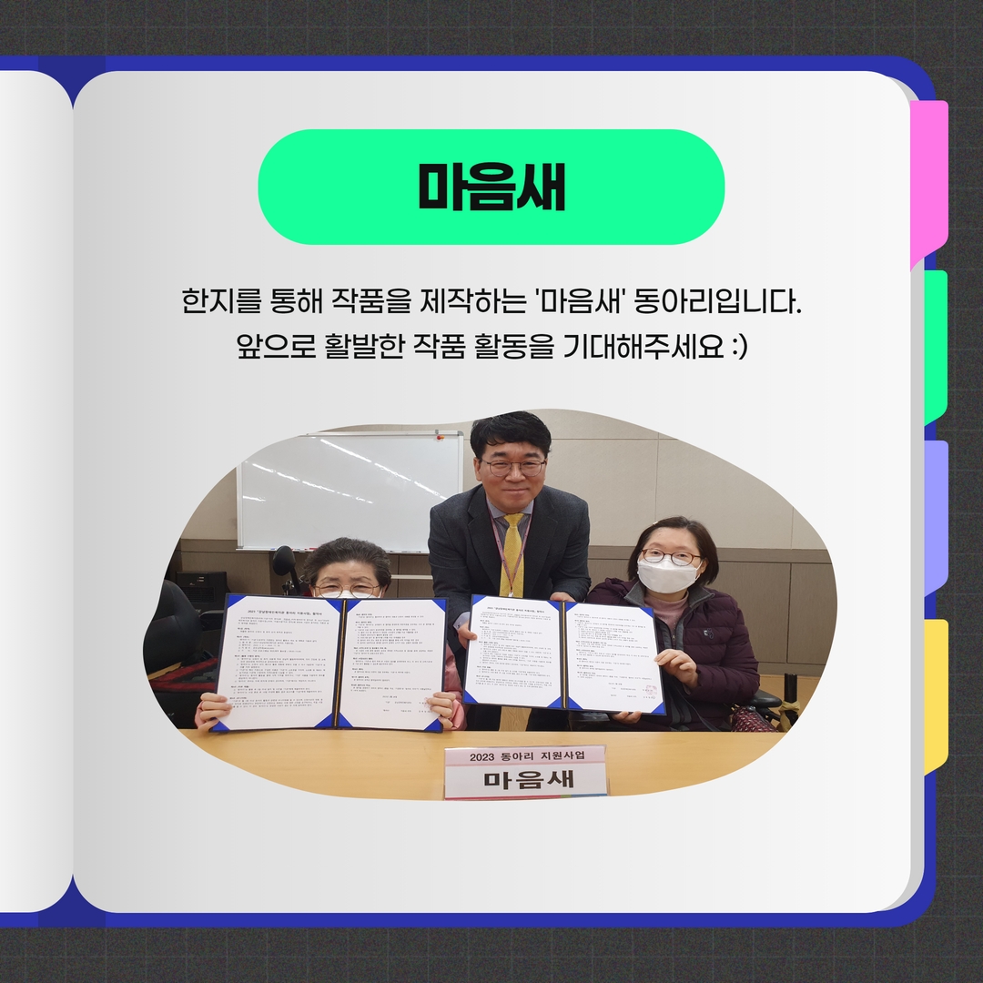 두 번째로 한지를 통해 작품을 제작하는 '마음새' 동아리입니다.