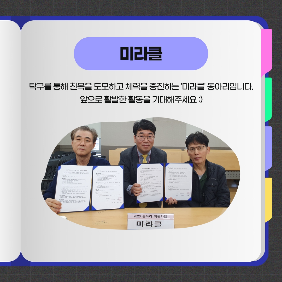 세 번째로 탁구를 통해 친목을 도모하는 '미라클' 동아리입니다.