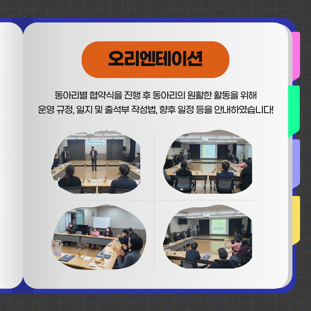 운영 규정, 일지 및 출석부 작성법, 향후 일정 등을 안내하였습니다.
