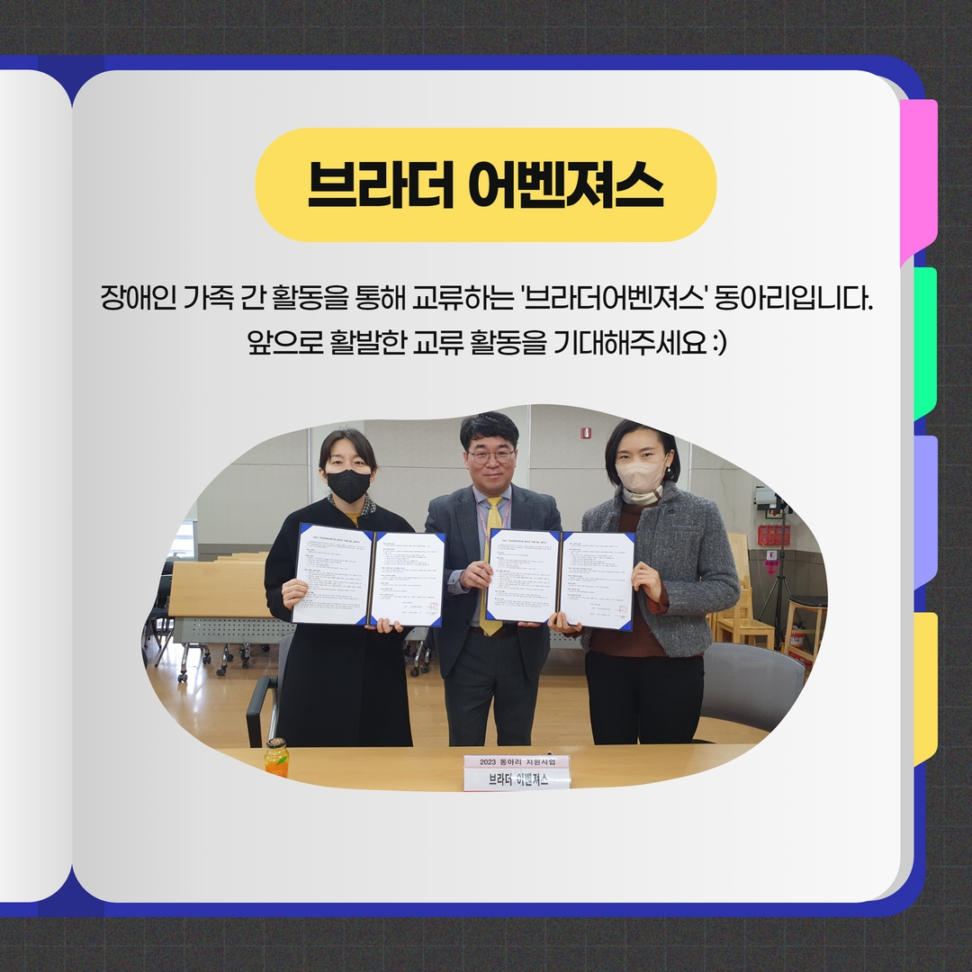 네 번째로 장애인 가족 간 활동을 통해 교류하는 '브라더 어벤져서' 동아리입니다.