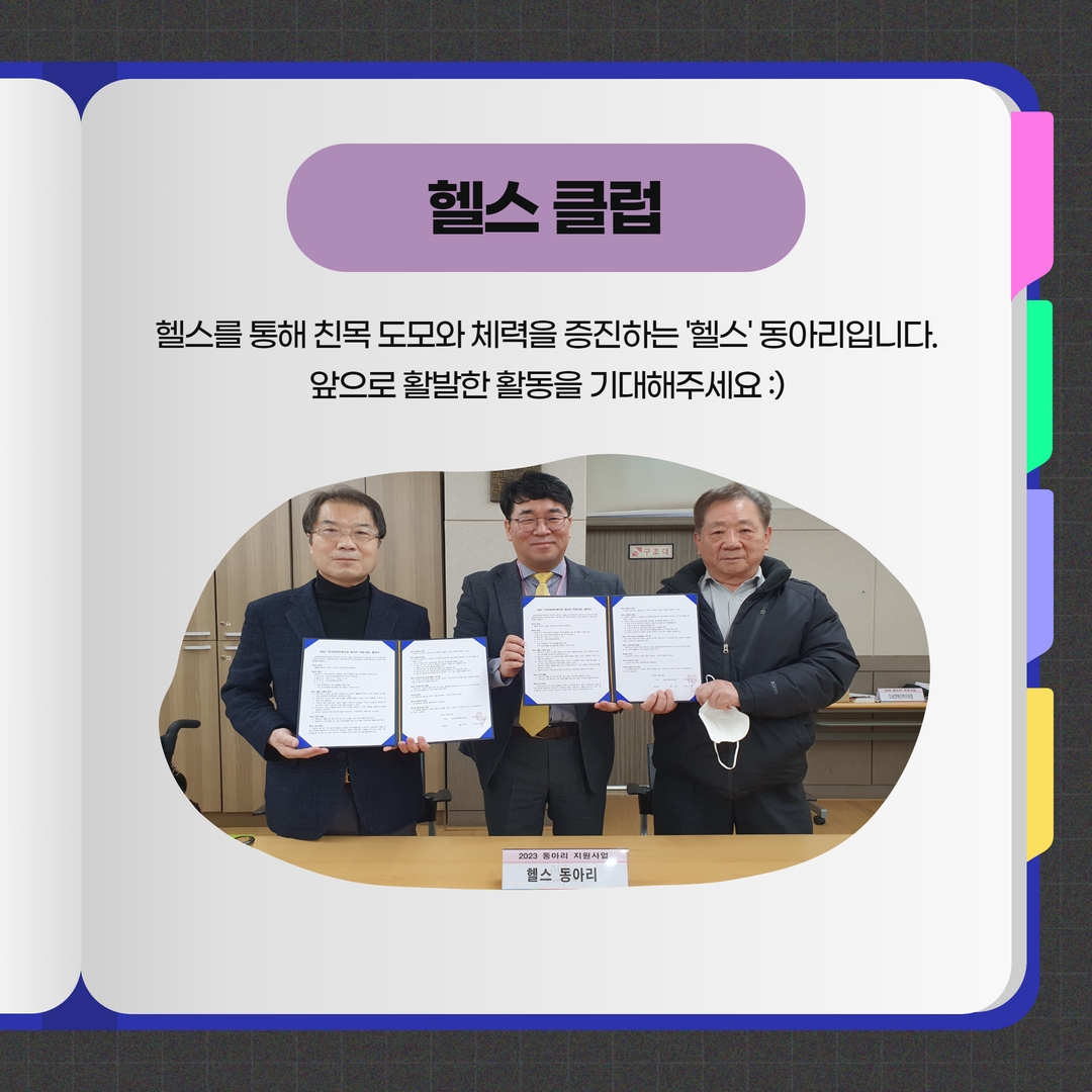 2023년 동아리 지원사업으로 심사를 통해 총 6개의 동아리가 선정되어,