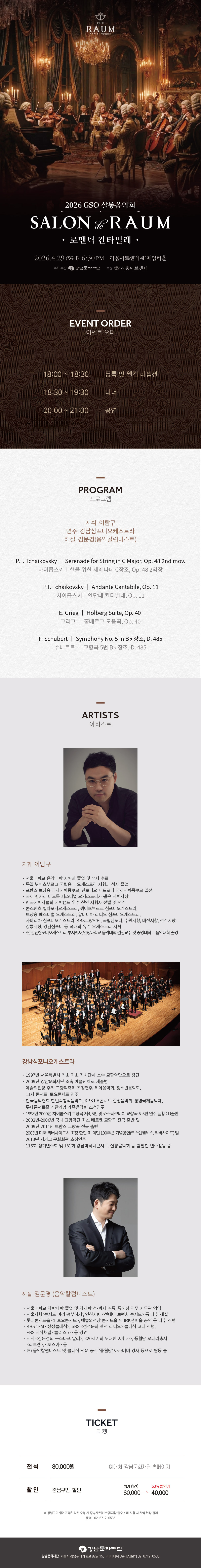 ▶ 공연명 : 2026 GSO살롱음악회 "Salon de RAUM-로맨틱 칸타빌레"