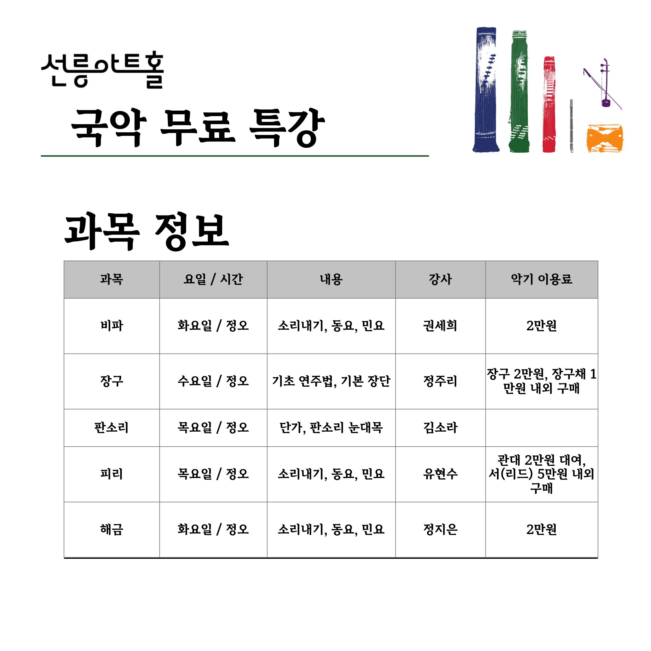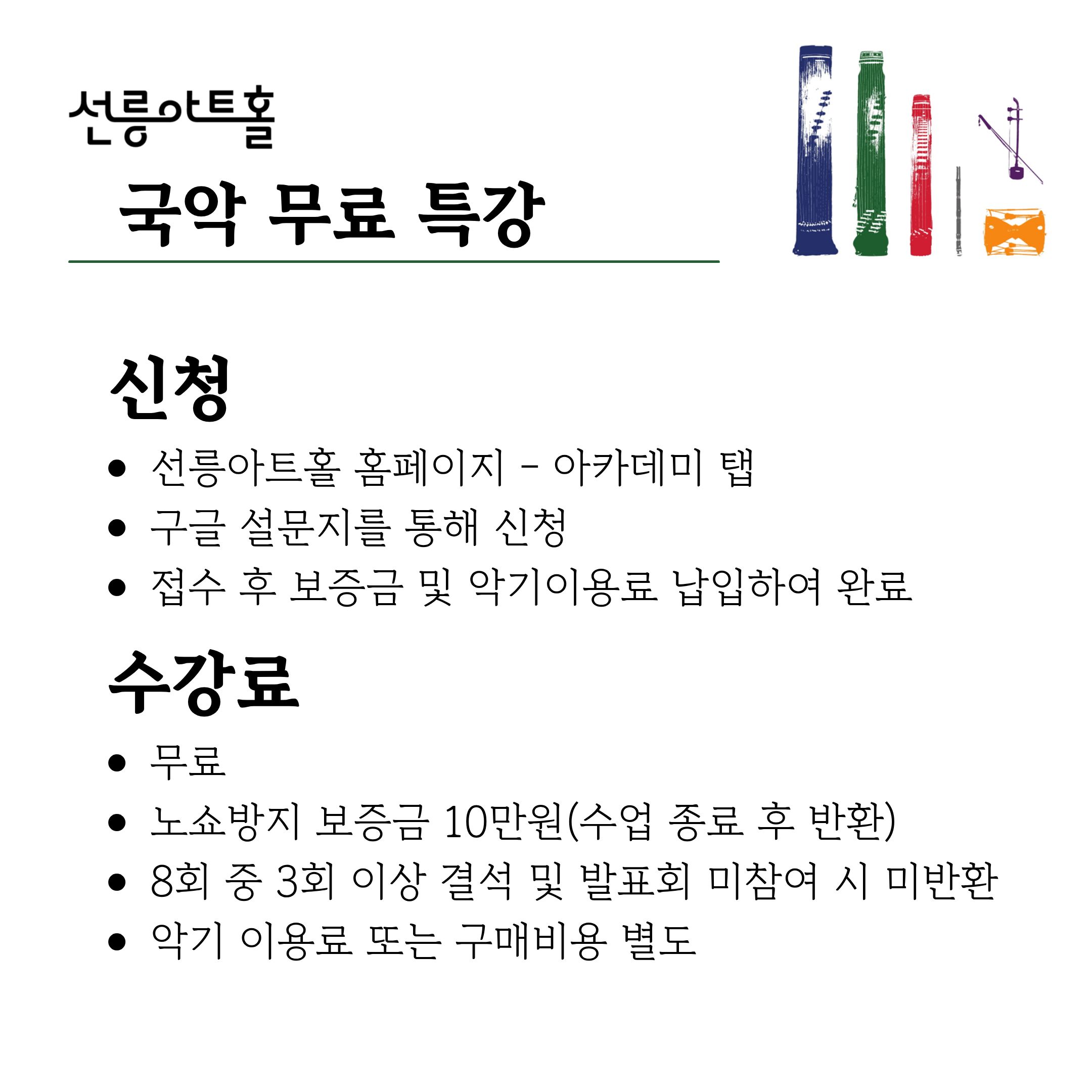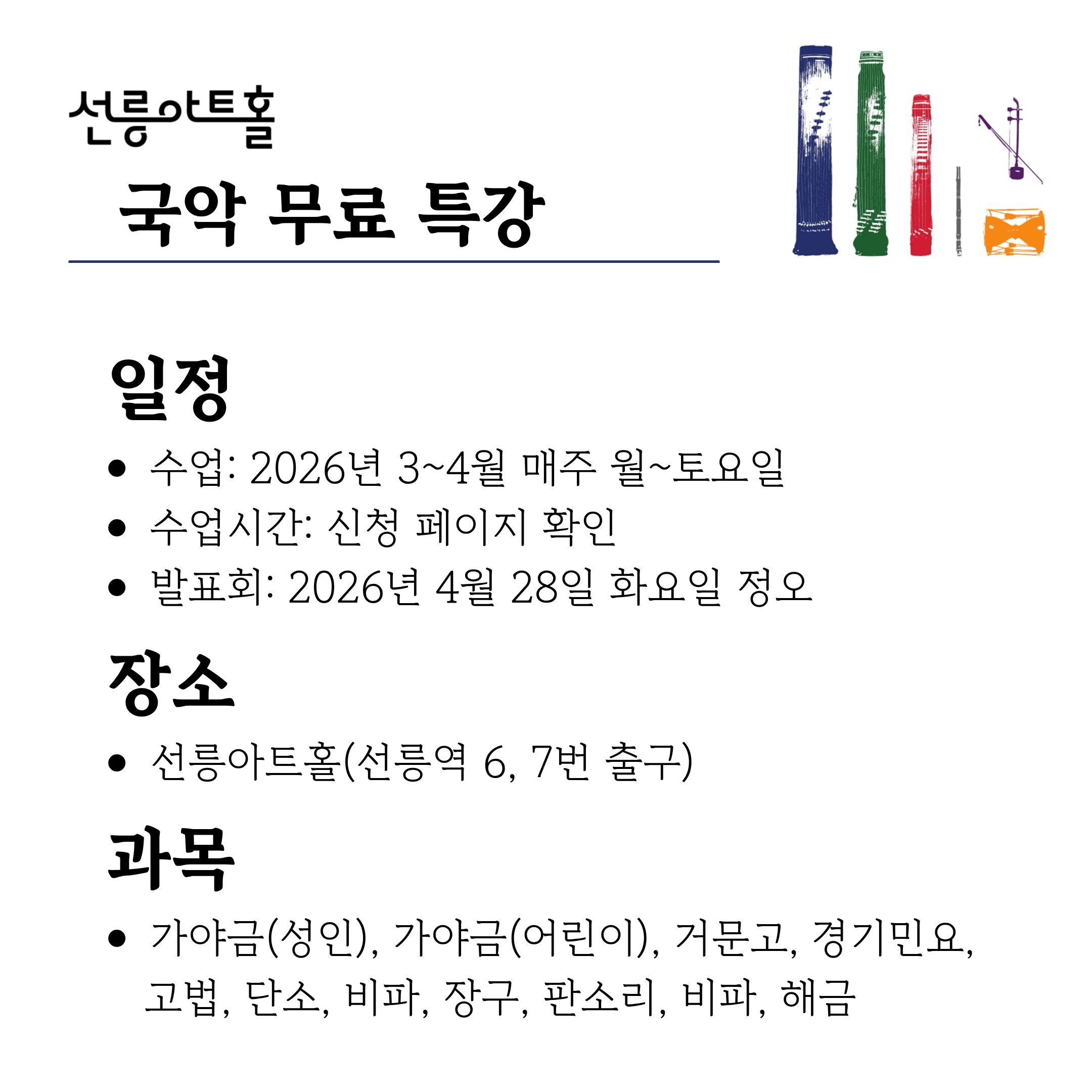 - 사업명: 2026 선릉아트홀 제5회 국악무료특강