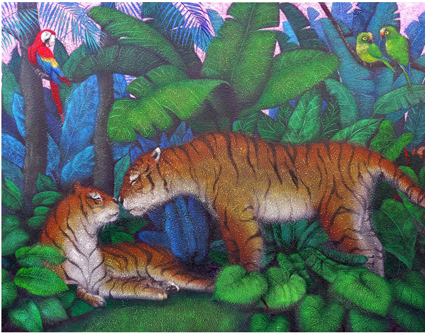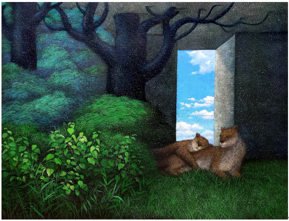 ‘하얀 발굽과 작은 날개’와 ‘야생정원’은 서로 다른 화면 구성 방식과 기법을 취하고 있음에도, 현실과 이상향의 경계를 탐구한다는 점에서 긴밀한 연속성을 지닌다. 전자는 우연성과 세밀한 묘사의 병치를 통해 현실과 환상의 긴장을 동시에 보여주고, 자유로운 가상세계로 안내한다. 후자는 색채의 떨림과 공간적 깊이를 활용하여 몰입적 경험을 극대화한다. 이 두 연작에서 공통적으로 드러나는 것은 심리적 안정의 추구이다. 화면 위에서 현실적 존재감과 가상의 서사가 동시에 구축되면서, 관람자는 일상의 불안을 잠시 벗어나 정서적 회복과 휴식을 경험하게 된다. 이러한 회화적 시도는 작품을 단순한 시각적 오브제를 넘어, 현대인의 마음을 위한 치유적 공간으로 확장시킨다.