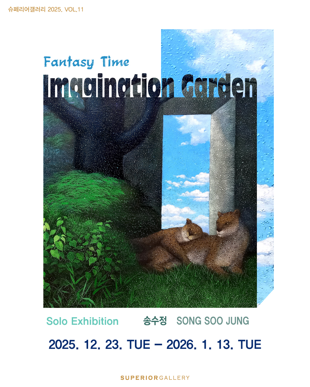 슈페리어갤러리는 2025년 12월, 상상의 정원과 빛의 흐름을 통해 내면의 감성 세계를 보여주는 송수정 작가의 개인전 《Imagination Garden : Fantasy Time》展을 개최합니다. 이번 전시는 내면의 감정과 이상적 풍경, 그리고 정원 속 생명들이 지닌 상징적 이미지를 중심으로, 현실과 상상이 자연스럽게 이어지는 풍경을 그려낸 전시입니다.