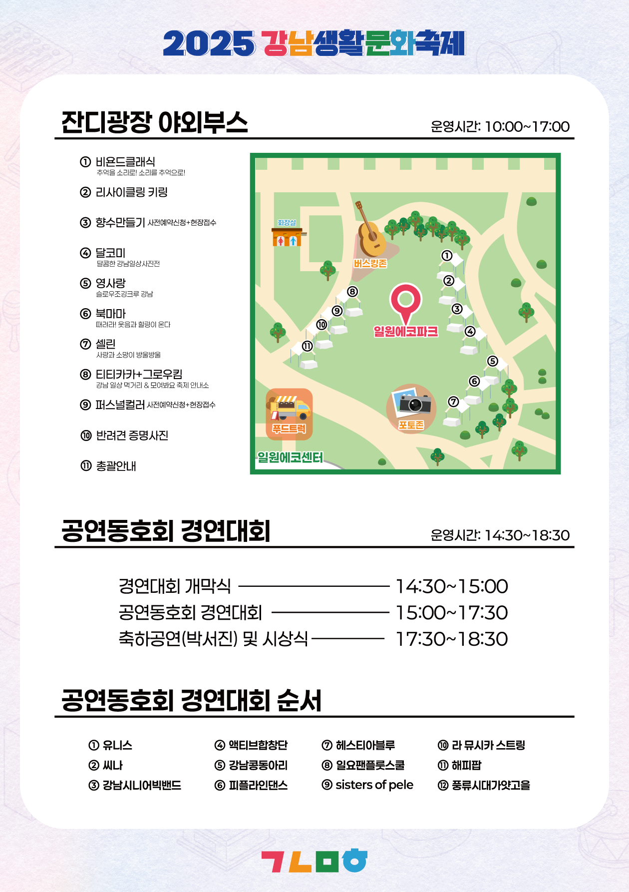- 향수만들기 프로그램 : 10/7 기준 전 회차 사전신청 마감되었습니다. 축제 당일 회차별 5명씩 현장접수 가능합니다.