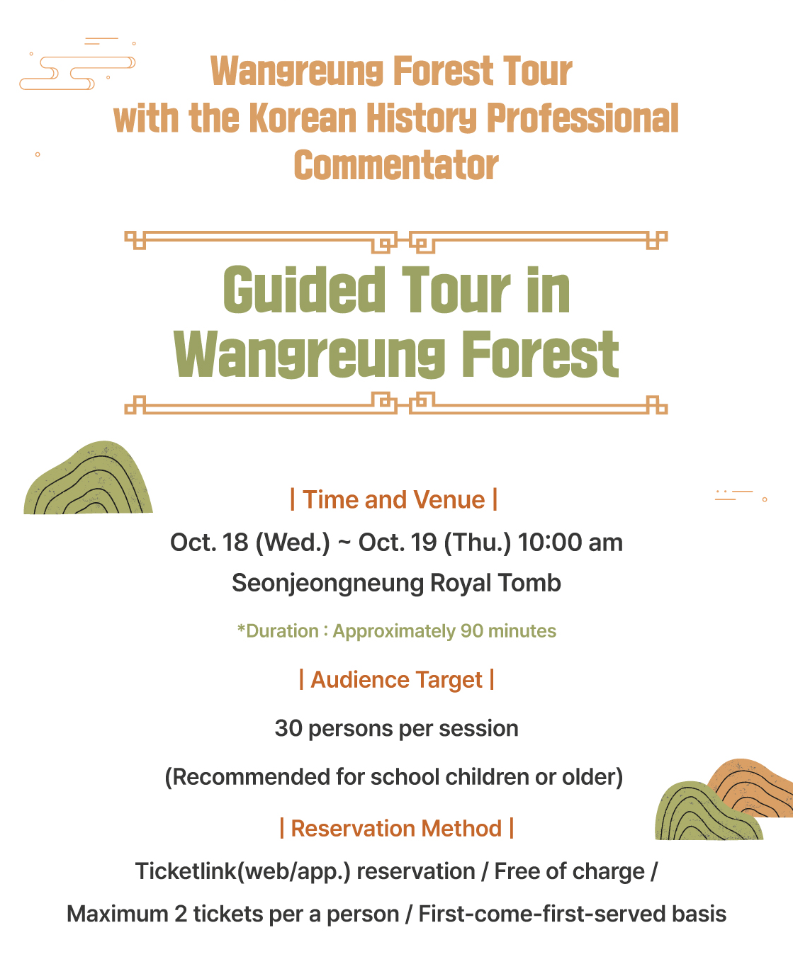 ○ 운영내용: 전문해설사와 함께 왕릉 숲을 거닐며 조선의 역사와 왕릉 주변 나무에 얽힌 흥미로운 이야기를 들어보는 영어 도슨트 프로그램