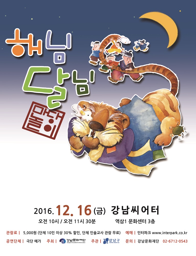 전래 동화 <해님달님>을 각색한 작품으로, 우리 전통의 사물놀이로 시작하며 관객과 직접 대화를 주고받는 우리 가락 가족 뮤지컬이다. 떡을 파는 어머니가 호랑이에게 잡아먹히게 되는 전반부 이야기와 후반부에는 오누이인 별순이와 달명이가 해와 달이 된 후, 홀로 남게 되어 평생을 슬픔과 외로움 속에서 늙어가던 어머니, 그리고 그때까지 계속 못된 짓을 하던 호랑이와의 만남을 주제로 하는 이야기가 펼쳐진다.