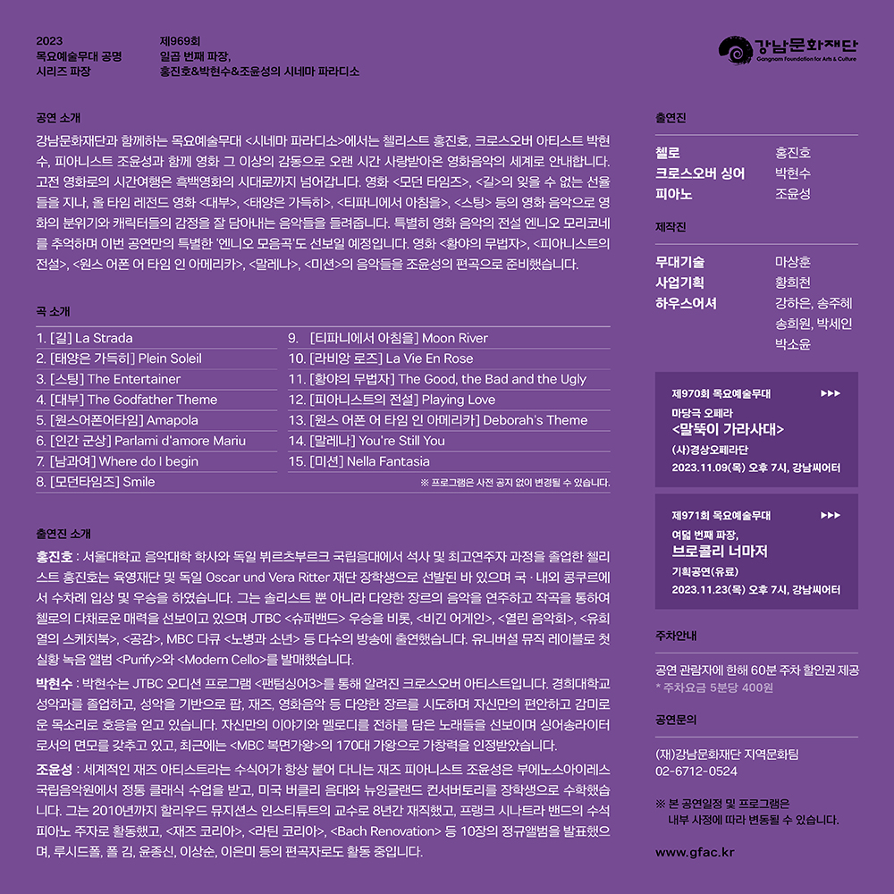 ![[제969회 목요예술무대] 일곱 번째 파장, 홍진호&박현수&조윤성의 시네마 파라디소 전자점자뷰어보기](/assets/images/common/braille_btn.png)